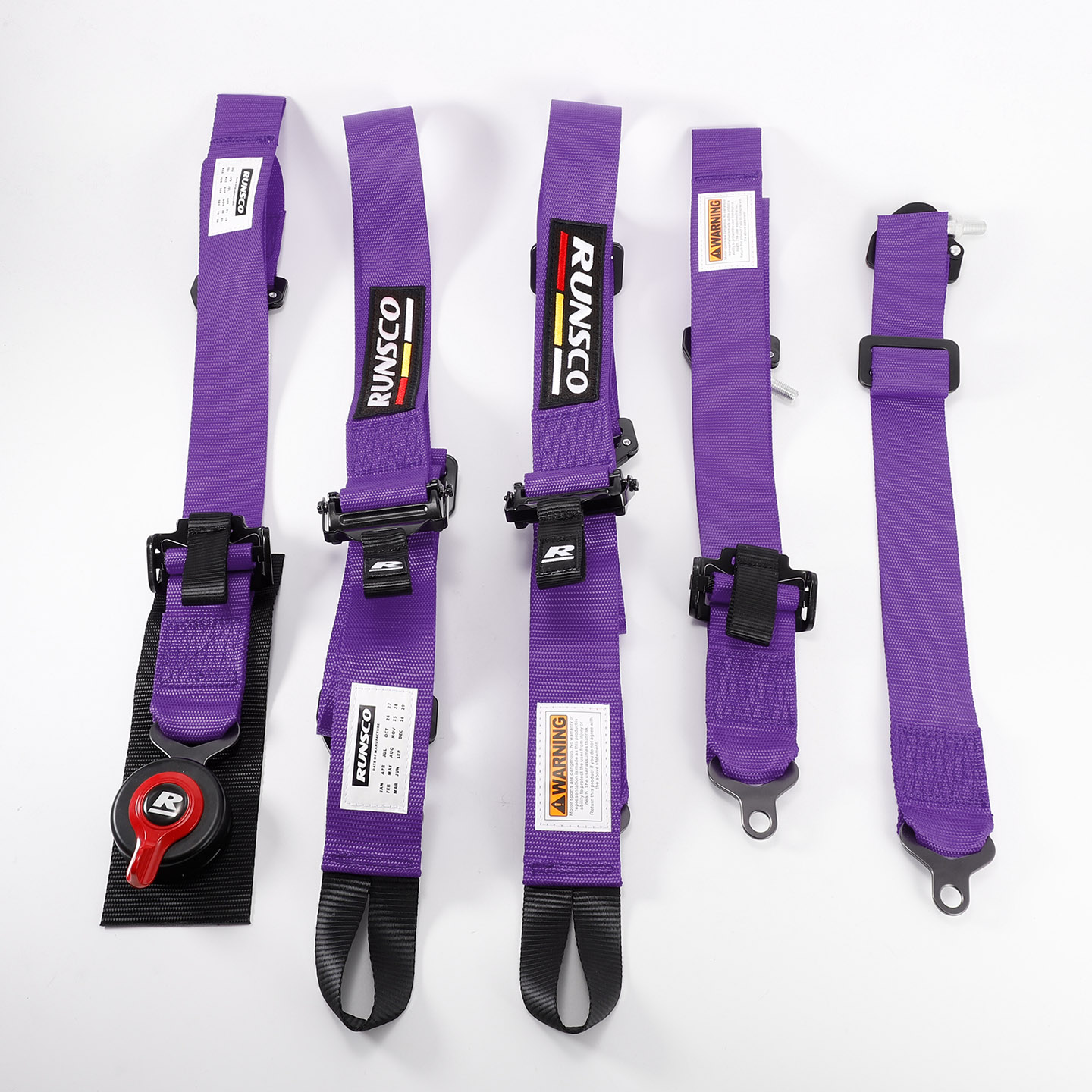 Red, black, blue, yellow, green, purple strap